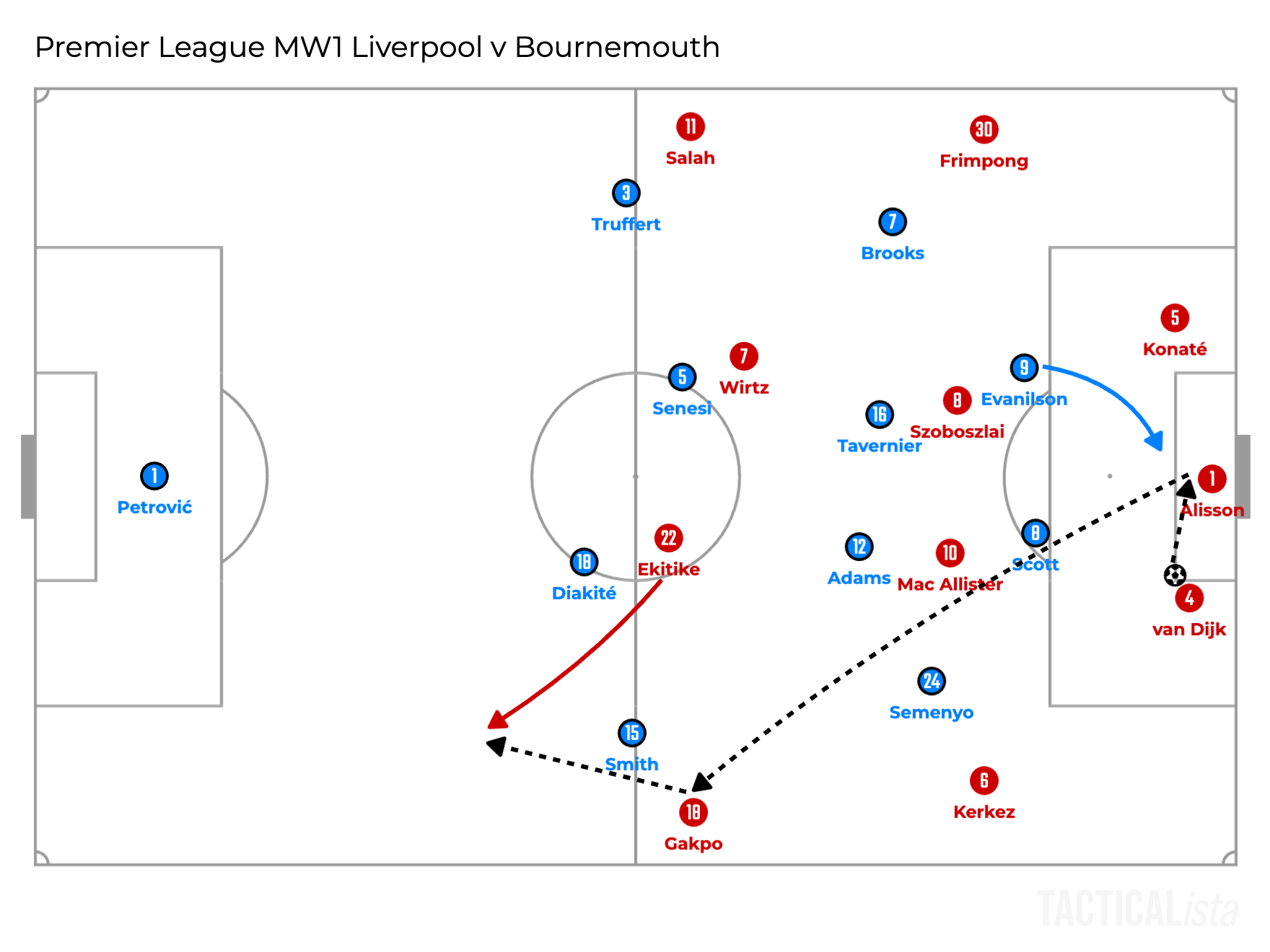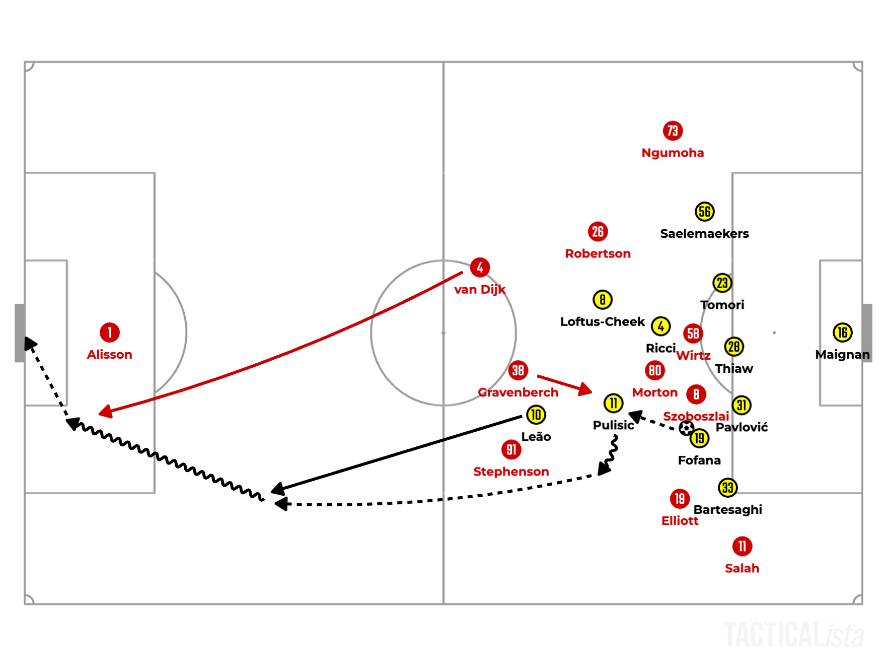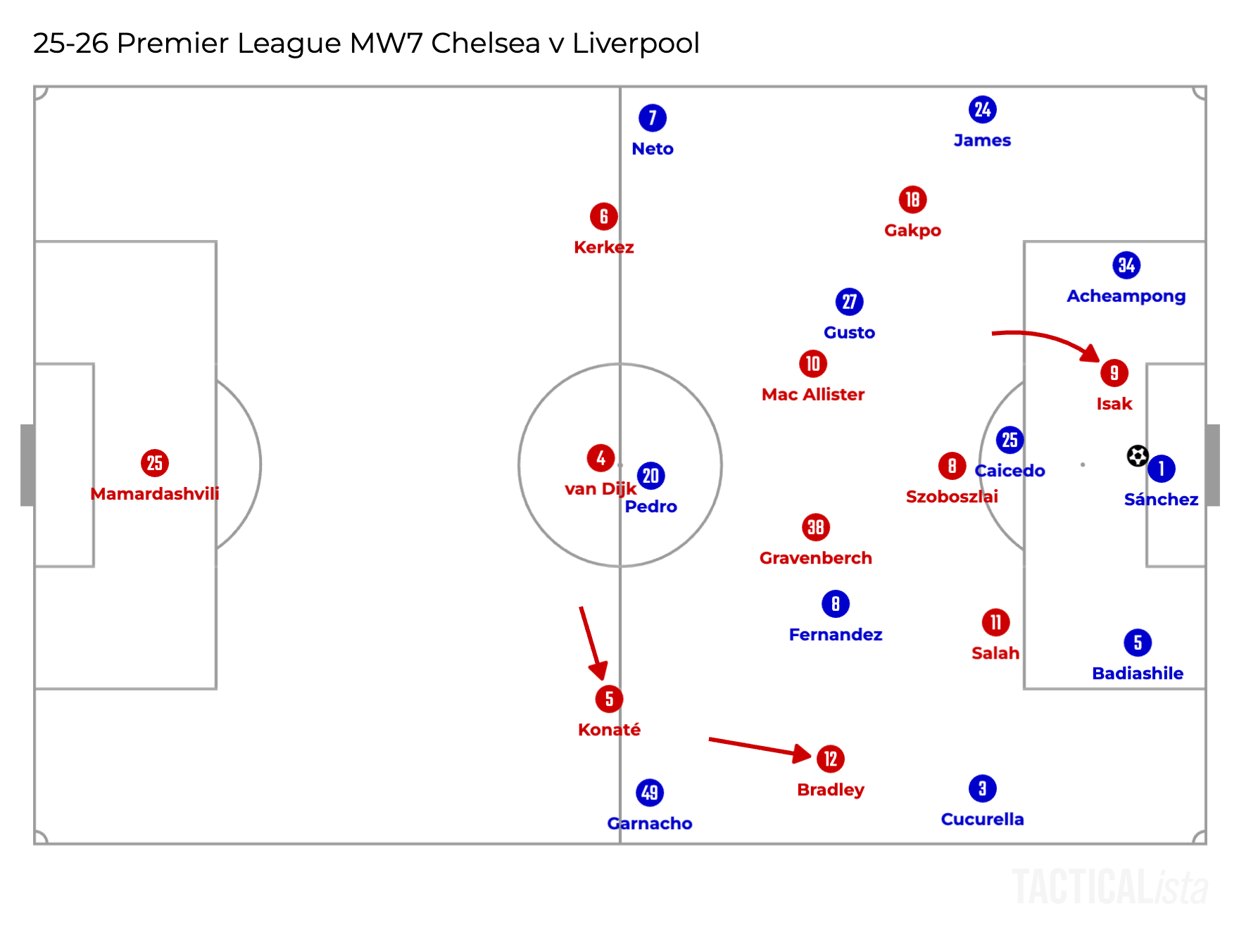 Another solution is getting Bradley to step higher. This is the one Slot decided to do during the game following the first goal conceded.